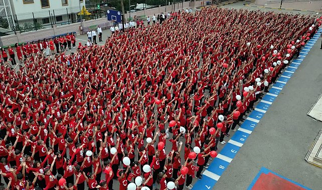 1500 öğrenci, okul bahçesinde söyledikleri şarkılarla Cumhuriyet'i kutladı