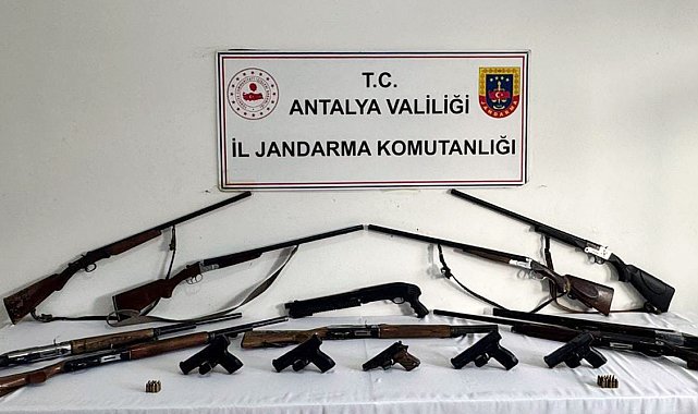Alkın BİRİCİK/ALANYA, (DHA)- ANTALYA'nın Alanya ilçesinde jandarma, 5 adrese düzenledikleri operasyonda 5 tabanca, 10 av tüfeği ve çok sayıda fişek ele geçirdi