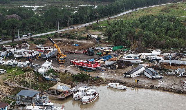 ANTALYA'nın Aksu ilçesinde hortumun vurduğu bölgelerde hasar gören teknelerin kaldırılması ve temizlik çalışmaları başlatıldı. Tarım alanları ve ormanlık bölgelerde biriken suyun, yağışın üzerinden günler geçmesine rağmen çekilmediği görüldü.Antalya'da geçen hafta pazartesi gecesi etkili olan şiddetli yağış ve fırtına, hayatı olumsuz etkiledi. Kentin birçok noktasında su baskınları yaşanırken, hortum ve fırtına nedeniyle birçok tarım arazisi zarar gördü. Aksu ilçesinde Aksu Çayı üzerinde gece saatlerinde oluşan hortum büyük hasara yol açtı. Hortumun etkilediği alanda bakım için karaya çekilen tekneler ile kıyıdaki tur ve balıkçı tekneleri zarar gördü. Bazı tekneler devrilip üst üste gelirken, bazıları ise yaklaşık 100 metre sürüklendi. Milyonlarca lira değerindeki teknelerin bir kısmı hortumla birlikte karaya savruldu, karada bulunan bazı tekneler ise parçalanarak metrelerce uzağa fırladı. Hasar gören ve batan tekneler için bölgede kaldırma çalışmaları başlatıldı. Teknelerin bazıları vinç ile kaldırılırken, alanda iş makineleriyle de temizlik yapıldı. Diğer yandan, hortum nedeniyle batan bazı teknelerin hala suyun içerisinde olduğu görüldü.AĞAÇLAR DEVRİLDİHortum, Kumköy sahiline giden yol üzerindeki ormanda da etkili oldu. Çok sayıda ağacın devrildiği, bazılarının ise gövdesinden kırıldığı görüldü. Hasar tespit çalışmaları sürerken, tarım alanları ile ormanlık bölgelerde biriken suyun, yağışın üzerinden günler geçmesine rağmen çekilmediği görüldü.HASAR DRON İLE GÖRÜNTÜLENDİHortumun neden olduğu hasar, dron ile görüntülendi. Görüntülerde hasar gören teknelerin kaldırma çalışmaları, batan tekneler ile devrilen ağaçların yarattığı tahribat net şekilde görüldü.
