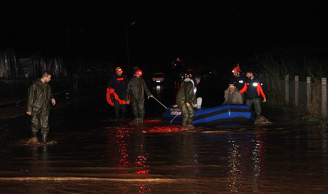 ANTALYA'nın Kumluca, Serik ve Kemer ilçelerinde etkili olan yağmurda seraları ve portakal bahçelerini su bastı. Evi su dolanları, yolda araçlarının tavanına çıkarak bekleyenleri itfaiye ile AFAD ekipleri, bot ve iş makineleriyle kurtardı. Bölgede hasar tespit çalışmaları başladı. Kumluca ilçesinde akşam saatlerinde etkili olan yağmur, su baskınlarına neden oldu. Karşıyaka, Kum, Göksu, Beykonak ve Mavikent mahallelerinde tarım alanları zarar gördü. Çok sayıda sera ve bahçe su altında kaldı. Üleşik, Göksü deresinde taşkın nedeniyle bazı araçlar yolda kaldı. Seraların çevresinde tarım işçilerinin kaldığı çok sayıda müstakil evi su bastı. Burada kalanlardan bazıları itfaiye ve belediye ekiplerince iş makineleriyle çıkarıldı.2 KİŞİ BOTLA KURTARILDIKarşıyaka Mahallesi Kocakesik Sokak'taki Üleşik Deresi'ndeki taşkın nedeniyle yolda aracıyla mahsur kalan 2 kişiyi AFAD ekipleri botla kurtardı. Seralarda domates, biber ve salatalık başta olmak üzere ekili ürünler ve portakal bahçeleri, su baskınlarından zarar gördü. Bölgede hasar tespit çalışmaları başlatıldı. AFAD ekipleri, iş makinesiyle mahsur kaldıkları yerden kurtardıkları bazı çocuk ve yaşlıları ıslanmaması için kucaklarında taşıdı. Kumluca'da dere taşkınında aracıyla yolda mahsur kalıp, ekipler tarafından kurtarılan kişi, "Su yükselince aracımı yolun sağına çektim, mahsur kaldık. AFAD ekibi kurtardı, Allah razı olsun" dedi.KURTARILMAYA BEKLEDİLERYağış, Kemer ilçesinde yollarda su birikintisine neden oldu. Çamyuva Mahallesi'ndeki Mehtap Sitesi'nde mahsur kalan 4 çocuk ve yaşlı kadın, jandarma tarafından kepçe ile kurtarıldı. Ulupınar'da su basan yolda aracıyla mahsur kalan 2 kişi de aracın üzerine çıkıp, kurtarılmayı bekledi. AFAD ekiplerinde aracın tavanında bekleyen 2 kişi kurtarıldı. Ekipler, Çamyuva'da su basan evde engelli bir vatandaşı yatağında battaniyeye sararak dışarı çıkardı. Kuzdere Mahallesi'nde mahsur kalan 5 küçükbaş hayvan, Ulupınar Mahallesi'nde mahsur kalan 2 vatandaş ile Çamyuva Mahallesi'nde aralarında bebek, çocuk, yaşlı ve yatalak kişilerin bulunduğu toplam 12 vatandaş, jandarma ekiplerinin çalışmaları ile güvenli alanlara tahliye edildi.EV VE İŞ YERLERİNİ SU BASTISerik ilçesinde de cadde ve sokak suyla doldu. İlçe merkezinde özellikle Atatürk İşhanı'nın zemin katı, Çınaraltı Meydanı, eski cuma pazarı civarı, Okutan Pasajı ile Kökez Mahallesi'ndeki bazı ev ile iş yerlerini su bastı. Üründü, Deniztepesi, Çakallık mahallelerinde seralar sular altında kaldı. Caddelerdeki su birikintisi nedeniyle bazı araçlar ilerleyemedi. İlçe merkezinde aracıyla mahsur kalan sürücü, itfaiye ekibi ile vatandaşların yardımıyla kurtarıldı. İş yerleri su basan esnaf, dükkanında tahliye çalışması yaptı. İlçede yağış nedeniyle tarım alanları da zarar gördü. Su baskını nedeniyle tarım arazisinde mahsur kalan köpeği, AFAD ekibi kurtardı.
