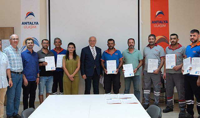 ANTALYA Büyükşehir Belediyesi iştirak şirketi Antalya Ulaşım A.Ş. bünyesinde işletilen tramvayların bakım ve onarımlarını yapan kurumun teknik personelleri Mesleki Yeterlilik Kurumu (MYK) belgesi almaya hak kazandı. Antalya Büyükşehir Belediyesi iştirak şirketi Antalya Ulaşım A.Ş. bünyesinde işletilen tramvayların bakım ve onarımları, kurumun teknik personeli tarafından gerçekleştiriliyor. Yılda ortalama 3,5 milyon kilometre yol yapan tramvayların güvenli şekilde yolcu taşımaya devam etmesi, olası arızalara etkin ve hızlı müdahale edilebilmesi için teknik personeller, Mesleki Yeterlilik Kurumu (MYK) belgesi almaya hak kazandı. 'Raylı Sistem Araçları Mekanik Bakım ve Onarımcısı' ile 'Demiryolu Yol Yapım, Bakım ve Onarımcısı' olarak görev yapan 12 teknik personel, kurum içi eğitimlerini tamamladıktan sonra İstanbul Uygulamalı Gaz ve Enerji Teknolojileri Araştırma Mühendislik Sanayi ve Ticaret A.Ş. Eğitim ve Belgelendirme Şefliği (UGETAM) tarafından düzenlenen yazılı ve uygulamalı sınavlarda başarılı oldu. Eğitimleri tamamlayan teknik personele sertifikaları, Antalya Ulaşım A.Ş. Genel Müdürü Melih Dipova tarafından takdim edildi.HEDEFİMİZ GÜVENİLİR VE KALİTELİ ULAŞIMEğitim ve belgelendirme programına öncülük eden Teknik Müdür Selçuk Çobanoğlu ve Sistem Kalite ve Emniyet Müdürü Kaan Sarı'ya teşekkür eden Genel Müdür Melih Dipova, "Antalyalılara ve şehrimize gelen misafirlere en iyi hizmeti sunmak, güvenilir, kesintisiz ve kaliteli bir ulaşımı sağlamak için bakım-onarım faaliyetlerimizi Avrupa Birliği standartlarında sürdürüyoruz. Eğitimlerini başarıyla tamamlayan çalışma arkadaşlarımı tebrik ediyorum" ifadelerini kullandı.