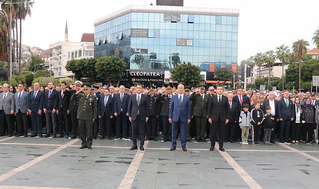 ANTALYA'nın Alanya ilçesinde Türkiye Cumhuriyeti'nin kurucusu Gazi Mustafa Kemal Atatürk düzenlenen programda anıldı. Hükümet Meydanı'nda düzenlenen 10 Kasım Atatürk'ü Anma Töreni'ne Kaymakam Şakir Öner Öztürk, Belediye Başkanı Osman Tarık Özçelik, Garnizon Komutanı Piyade Albay Adem Ağırbaş, İl Alay Jandarma Komutan Yardımcısı Albay Engin Burak Mindivanlı, İlçe Jandarma Komutanı Yarbay Hüseyin Direk, İlçe Emniyet Müdürü Mustafa Hilmi Özgönül, kamu kurum ve kuruluş temsilcileri, siyasiler, sivil toplum kuruluşu üyeleri, öğrenciler ve çok sayıda vatandaş katıldı. Çelenk sunumu ile başlayan tören 2 dakikalık saygı duruşuyla devam etti. Meydandaki törenin ardından program Alanya Kültür Merkezi'nde devam etti. Buradaki program saygı duruşunda bulunulması ve İstiklal Marşı'nın okunması, günün anlam ve önemini belirten konuşmalar, 'Atatürk Haftası' temalı yarışmalarda dereceye giren öğrencilere ödüllerinin verilmesi ve 'Atatürk'ün Kıvılcımları' adlı gösterinin sahnelenmesiyle sona erdi.