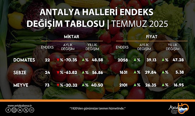 ANTALYA, (DHA)- ANTALYA Ticaret Borsası (ATB) Temmuz Ayı Hal Endeksi'ni açıkladı