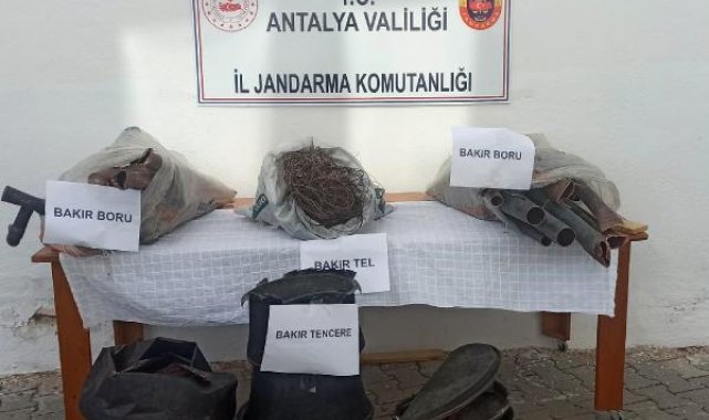 Levent YENİGÜN/ANTALYA,(DHA) - ANTALYA'nın Kaş ilçesinde çalınan bakır kablo ve borunun şüphelileri uyuşturucu madde ve ruhsatsız av tüfekleriyle yakalanırken, çalıntı malzemeye alan hurdacıya da adli işlem yapıldı.Kaş ilçesi Gömbe mahallesinde 19 Mart tarihinde İ.K. isimli şahsa ait soğuk hava deposundan 90 metre bakır kablo ve 20 metre bakır borunun çalınması ile ilgili olarak Kaş Cumhuriyet Başsavcılığı koordinesinde Kaş ilçe Jandarma Komutanlığı ekipleri çalışma başlattı. Yapılan araştırmalar neticesinde A.Ç. ve İ.K. isimli şahısların çalınan malzemeleri 11 bin liraya hurdacı L.Ö.'ye sattığı tespit edildi.Şüphelilerden A.Ç.'nin evinde alınan adli arama kararı ile yapılan aramada 4 adet ruhsatsız av tüfeği ve yaklaşık 5 gram kenevir tohumu ele geçirildi. Olayla ilgili bakır kablo ve boruları satın alan L.Ö. isimli hurdacı hakkında, "Suç eşyasını satın alma veya kabul etme" suçundan adli işlem başlatılırken, olayın şüphelileri A.Ç. ve İ.K. gözaltına alındı.A.Ç. hakkında ayrıca ruhsatsız av tüfekleri bulundurmak suçundan idari işlem yapıldı.FOTOĞRAFLI