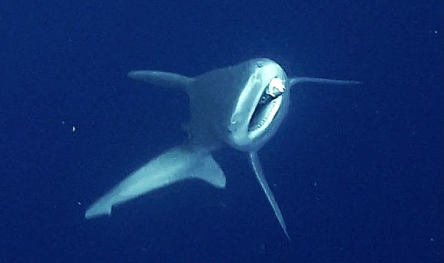 Selma KUNAR/ANTALYA, (DHA)- ANTALYA'da Sıçan Adası açıklarında su altı boru hattını kontrol etmek için dalış yapan sanayi dalgıçları, burnuna olta kancası takıldığını gördükleri camgöz köpek balığını özgürlüğüne kavuşturdu