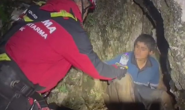 ANTALYA'nın Konyaaltı ilçesinde dağlık alanda mahsur kalan S.K. (27), Jandarma Arama Kurtarma (JAK) timlerinin yürüttüğü çalışmayla kurtarıldı. JAK ekipleri, ayakkabısını düşürdüğünü, acıktığını ve susadığını belirten S.K.'ya yiyecek ve su ikram etti.Konyaaltı ilçesi Hacısekililer Mahallesi'nde, 23 Aralık saat 13.00 sıralarında bir vatandaşın Merkez Jandarma Karakolu'nu arayarak, dağlık alanda bir kişinin yardım istediğini bildirmesi üzerine bölgeye ekipler sevk edildi. Kayalık ve uçurum bulunan araziye gittiği belirlenen S.K.'nın kurtarılması amacıyla 2 asayiş timi ile JAK timleri çalışma başlattı. JAK timleri tarafından gece şartlarında dağcılık ekipmanları kullanılarak S.K.'ya ulaşıldı. S.K., kendisine ulaşan ekiplere ayakkabısını düşürdüğünü, acıktığını ve susadığını belirtti. Ekipler, S.K.'ya su ve yiyecek ikram etti. Olumsuz hava koşulları nedeniyle havadan tahliye yapılamadı. Gerekli emniyet tedbirleri alınarak sıkıştığı bölgeden çıkarılan S.K., dağcılık ekipmanlarıyla güvenli alana indirilerek kurtarıldı.