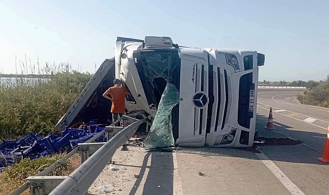 ANTALYA Demre- Finike yolunda kontrolden çıkan tır domates yüklü tır devrildi.Kaza, dün saat 23.00 sıralarında Demre- Finike yolunun Demre çıkışında meydana geldi. Demre Hali'nden yüklenen domatesleri taşıyan 55 EY 848 plakalı tır, kimliği öğrenilemeyen sürücünün direksiyon hâkimiyetini kaybetmesi sonucu refüje devrildi. Tırın kasasında yüklü domatesler refüje ve yol kenarına döküldü. İhbarla olay yerine kısa sürede polis ve sağlık ekipleri sevk edildi. Tırda hasar meydana gelirken, sürücünün sağlık durumunun iyi olduğu belirlendi.
