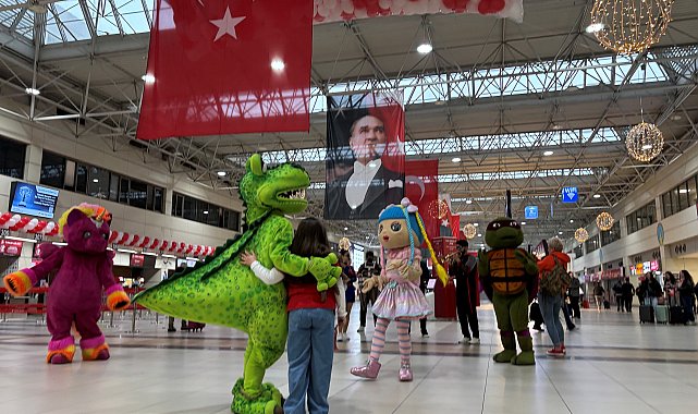 - FRAPORT TAV Antalya Havalimanı, 23 Nisan Ulusal Egemenlik ve Çocuk Bayramı kapsamında terminalde gerçekleştirdiği özel etkinlikle bayram coşkusunu yolcularıyla buluşturdu. Günün ilk saatlerinden itibaren İç Hatlar Giden Yolcu Salonu'nda başlayan etkinlikler, özellikle çocuk yolculara unutulmaz bir seyahat deneyimi sundu.Etkinlik kapsamında terminal alanı Türk bayrakları ve kırmızı beyaz balonlarla süslenirken, yürüyen bando performansı yolculara bayram atmosferini yaşattı. Dinozor, My Little Pony, Ninja Kaplumbağa ve LOL Bebek karakterlerinden oluşan maskotlar, terminalde çocuklarla bir araya gelerek eğlenceli anlara imza attı.Balon sanatçısının hazırladığı figürler ve gün boyunca dağıtılan bayraklar ile terminalde görsel bir şölen oluşturulurken, çocuk şarkılarının eşlik ettiği etkinlikler yolcular tarafından ilgiyle takip edildi.Fraport TAV Antalya Havalimanı, özel günlerde gerçekleştirdiği etkinliklerle yolcu deneyimini zenginleştirmeye devam ederken, 23 Nisan Ulusal Egemenlik ve Çocuk Bayramı'nı bu yıl da terminalde coşkulu bir atmosferle kutladı.