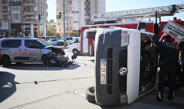ANTALYA'da 'dönülmez' tabelasına rağmen sürücüsünün dönüş yaptığı minibüs ile hafif ticari araç çarpıştı. Yan yatan minibüsteki 2 kişi ile şoka giren hafif ticari aracın sürücüsü kontrol amaçlı hastaneye götürüldü.Kaza, öğle saatlerinde Konyaaltı ilçesi Toros Mahallesi'ndeki Atatürk Bulvarı üzerinde meydana geldi. İddiaya göre bulvar üzerinde seyir halinde bulunan Mehmet K. kullandığı 07 ZY 0710 plakalı minibüsüyle yasak olan noktadan dönüş yapmaya çalıştı. Bu sırada Sevda C. ise 07 BPA 079 plakalı aracıyla hatalı dönüş yapan minibüse çarptı. Minibüs yan yatarken, araçta bulunan Mehmet K. ve ismi öğrenilemeyen bir kişi sıkıştı.Kazanın 112 Acil Çağrı Merkezi'ne bildirilmesiyle olay yerine polis, sağlık ve itfaiye ekipleri sevk edildi. Araçta bulunan ve kazanın etkisiyle şoka giren sürücü Sevda C.'yi çıkaran vatandaşlar sakinleştirmeye çalıştı. Olay yerine gelen itfaiye ekipleri ise müdahale ederek araçta sıkışan sürücü Mehmet K. ve yolcuyu çıkarttı. Yan yatan araçtan burunları bile kanamadan çıkan 2 kişi ile diğer aracın sürücü Sevda C. kontrol amaçlı hastaneye götürüldü. Kaza yapan araçlar ise çekici yardımıyla olay yerinden kaldırıldı.