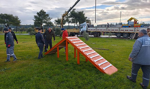 KEPEZ Belediyesi, Duacı Mahallesi'nde 36 bin metrekarelik Edip Akbayram Gençlik Parkı'na, 2 parkurdan oluşan 800 metrekarelik Köpek Oyun Parkı kazandırdı. Önümüzdeki günlerde hizmete girecek oyun parkı, köpeklerin güvenle oynayabileceği ve eğitim alabileceği şekilde tasarlandı.Kepez Belediyesi, hayvan dostu bir hizmeti Duacı Mahallesi'nde hayata geçiriyor. Edip Akbayram Gençlik Parkı yanına, evcil hayvan sahiplerinin köpekleriyle vakit geçirebileceği, oyun oynayabileceği ve eğitimlerine katkı sağlayacak bir köpek oyun parkı inşa edildi. Toplam 800 metrekarelik oyun parkı, büyük ve küçük köpekler için iki ayrı parkurdan oluşuyor. Büyük köpek parkuru 360 metrekare, küçük köpek parkuru ise 310 metrekare büyüklüğünde. Parkta köpekler için kum havuzu, tırmanma rampaları, lastik halkalar, zıplama lastikleri, denge tahtası ve ayarlanabilir engeller yer alıyor. Ayrıca güvenlik için yumuşak minderler, su, dinlenme alanları ile köpek sahipleri için oturma alanları bulunuyor.Kepez Belediyesi Park ve Bahçeler Müdürlüğü ekipleri tarafından hazırlanan oyun alanları, köpeklerin oyun oynarken eğitimlerine katkı sağlayacak şekilde düzenlendi. Köpek oyun parkı ile hem evcil hayvan sahiplerine hem de ziyaretçilere yeni bir yaşam alanı sunulacak.