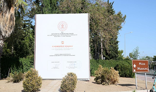 Mehmet ÇINAR/ANTALYA, (DHA)-Antalya'da depreme dayanıksız olduğu gerekçesiyle yıkımına karar verilen ve 16 Temmuz'da kapatılan Antalya Arkeoloji Müzesi'nin girişine devasa pankart şeklinde depreme dayanıksız olduğuna dair rapor olduğu belirtilen yazılar asıldı