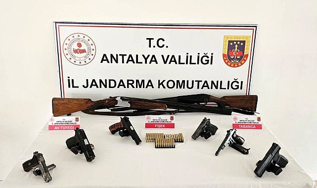ANTALYA'nın Serik ilçesinde jandarma ekipleri tarafından 8 ayrı adrese yapılan operasyonda ruhsatsız silah ve tabanca ele geçirildi. Serik Cumhuriyet Başsavcılığı talimatları doğrultusunda, Antalya İl Jandarma Komutanlığı koordinesinde, Serik İlçe Jandarma Komutanlığı ve jandarma dedektifleri JASAT tarafından yürütülen çalışmalar sonucunda 8 şüpheliye ait adrese baskın düzenlendi. Yapılan aramada 6 tabanca, 193 tabanca mermisi, 2 av tüfeği ve 7 şarjör ele geçirildi. Olayla ilgili soruşturma başlatıldı.