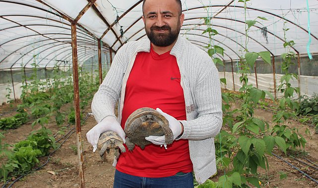 Ramazan SARIKAYALI/KUMLUCA (Antalya), (DHA)- ANTALYA'nın Kumluca ilçesinde çiftçilik yapan Adem Kaptan (32), serasına dadanan kaplumbağaların ürünlerine zarar verdiğini söyledi