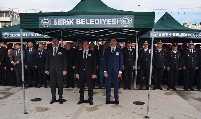 ANTALYA'nın Serik ilçesinde Ulu Önder Mustafa Kemal Atatürk'ün ebediyete irtihalinin 87. yıl dönümü dolasıyla anma programı düzenlendi. Cumhuriyet Meydanı düzenlenen törene Kaymakam Cemal Şahin, Belediye Başkanı Kadir Kumbul, Serik Cumhuriyet Başsavcısı Muhammed Kaan Özer, siyasi partiler, kamu kurumları ve STK'ların temsilcileriyle vatandaşlar ve öğrenciler katıldı. Kaymakam Cemal Şahin ve Belediye Başkanı Kadir Kumbul, Atatürk Anıtı'na çelenk sunumu gerçekleştirdi. Saat 09.05'i gösterdiğinde 2 dakikalık saygı duruşunda bulunuldu. Ardından hep birlikte İstiklal Marşı okundu. Tören alanı dışındaki vatandaşlar da cadde ve sokaklarda bulundukları yerde durarak Ata'ya saygılarını gösterdi. Meydandaki tören sonrası Merkez Tekeli Ahmet Can Özpınar Ortaokulu'nda program devam etti. Okulun toplantı salonunda saygı duruşunda bulunulması ve İstiklal Marşı'nın okunmasının ardından 10 Kasım temalı video gösterisi yapıldı, Atatürk'ün sevdiği şarkılar çalındı ve ardından öğrenciler tarafından hazırlanan oratoryo sahnelendi.