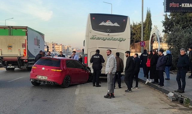 ANTALYA'nın Serik ilçesinde yolcu otobüsüyle çarpışan otomobilin sürücüsü R.K., yaralandı. Kaza, saat 08.30 sıralarında Orta Mahalle D400 kara yolunda meydana geldi. Malatya'dan Antalya merkezine ilerleyen E.Ş.'nin kullandığı 44 ATA 11 plakalı yolcu otobüsüne aynı istikametteki R.K.'nin kullandığı 07 CBH 785 plakalı otomobil çarptı.İhbar üzerine olay yerine polis ve sağlık ekibi yönlendirildi. Kaza sonrası otobüsteki yolcular kısa süreli panik yaşadı. Otomobil sürücüsü R.K., sağlık ekiplerinin ilk müdahalesi sonrası Serik Devlet Hastanesi'ne götürüldü. Polis kazayla ilgili inceleme başlattı.